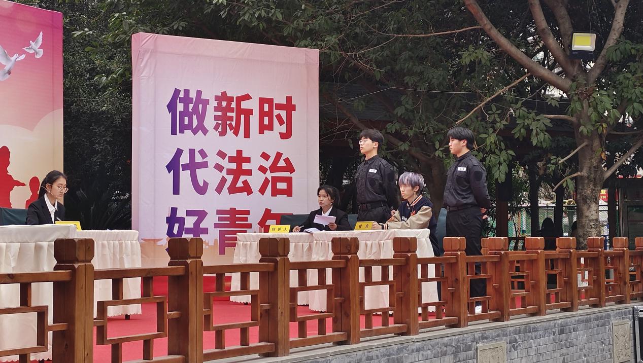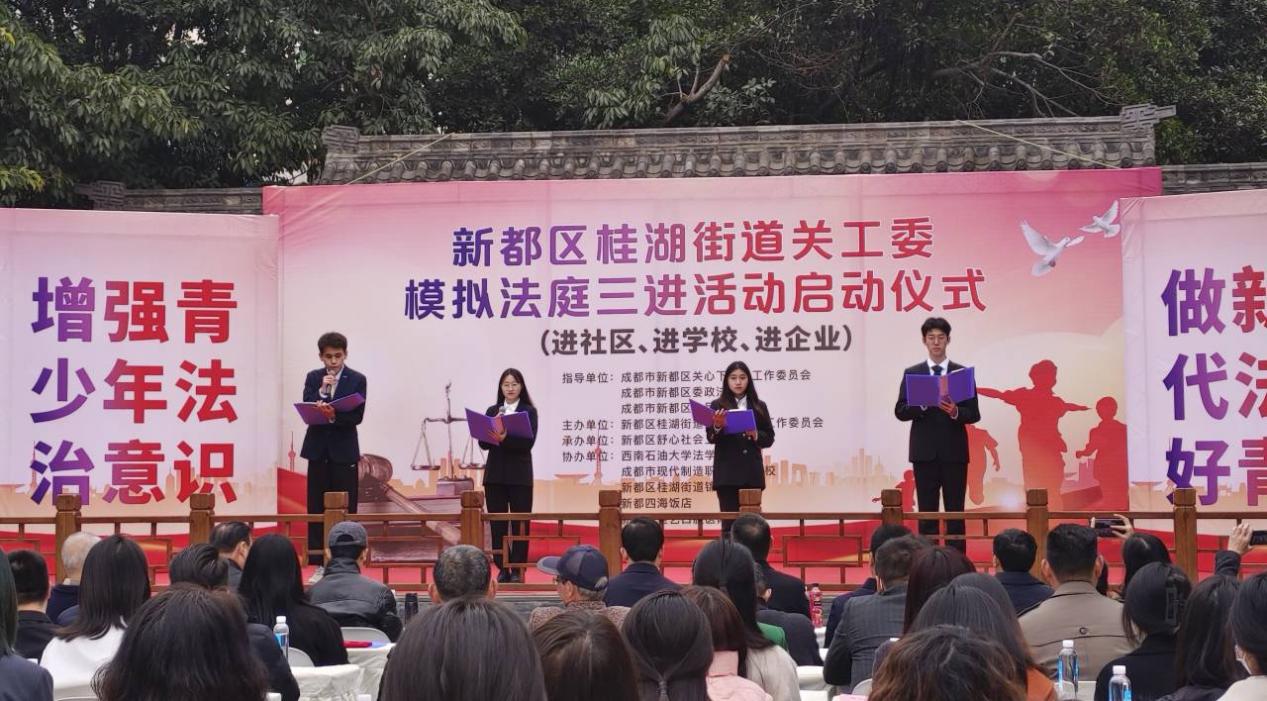 “现在开庭!”随着清脆的法槌敲击声响起,在新都区桂湖街道锦水苑社区广场上,支部同志为社区群众展示了一次别开生面的模拟法庭活动。此次模拟法庭公开审理了一起由检察机关提起公诉的被告人涉嫌抢劫一案。呈现的是一名中学生因沉迷网络走上迷途,抢劫钱财并致人受伤,案件经过法庭调查、辩护、教育以及最后陈述,最终被告人接受法庭审判的情景。整场模拟法庭展演严格按照法定程序有序进行,气氛庄严。