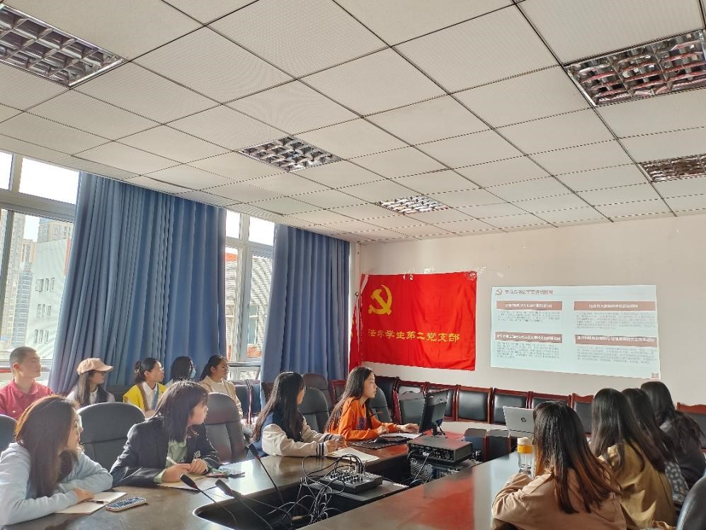 为了进一步学习习近平总书记重要讲话精神及相关政策文件,加强各党员的政治理论学习,持续强化理论武装,推进党的创新理论入脑入心、走深走实,法学专业学生第二党支部于2023年3月9日15时在博学楼AB510会议室开展“学习总书记重要讲话精神,领略中国式现代化重要成果”政治理论学习。本次活动学习形式为线上腾讯会议与线下同步开展,由支部同志刘靖童同志主持。