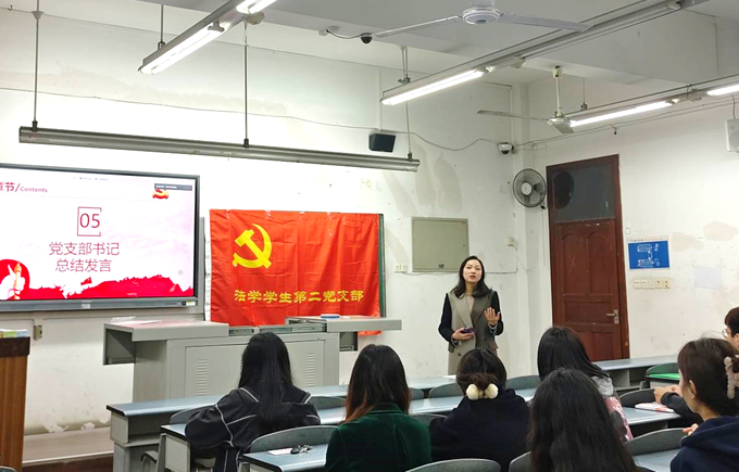 2023年3月30日下午,法学专业学生第二党支部于博学楼B104开展了以“学习习近平总书记重要讲话精神、学习全国两会精神”为主题的理论学习会议。本次会议采用线上线下相结合形式召开,由相亚茹同志主持,支部全体同志参加。