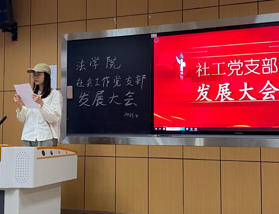 为响应党的号召,做好党员发展工作,进一步加强党员队伍建设,激活基层党组织活力,法学院社会工作专业学生党支部于5月22日在博学楼A402召开2023年春季学期党员发展大会,讨论发展王一闵、余海洋等10名同志为中共预备党员的事宜。本次大会由支部委员梁家慧同志主持。