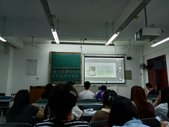 2023年5月19日,法学专业学生第三党支部于博学楼A501开展了“传承红色基因·争当青年先锋”为主题的党组织生活。本次活动由肖彤曦同志主持,张文超同志分享,支部全体同志参加。