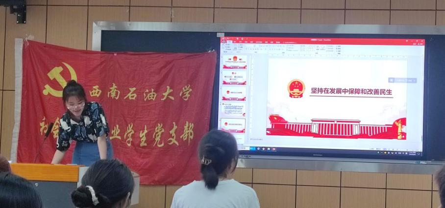 在第二部分,主持人带领同学们从三个方面全面理解“坚持在发展中保障和改善民生”:坚持保障和改善民生的发展导向、在更高的水平上保障和改善民生、推动共同富裕取得更为明显的实质性进展。通过本次党组织生活,本支部对该章内容有了更深刻的认识。发展是保障和改善民生的前提,保障和改善民生是发展的最终目的。坚持在发展中保障和改善民生,必须坚持保障和改善民生的发展导向,坚定不移走高质量发展之路,在发展中保障和改善民生,努力实现发展与保障和改善民生的良性互动。要在更高的水平上保障和改善民生,就要解决人民群众急难愁盼问题、推动基本公共服务均等化、提高人民生活品质。而共同富裕是社会主义的本质要求,是中国式现代化的重要特征。我们所追求的民生是“全体人民共同富裕”的民生,要着力缩小区域差距、城乡差距、收入差距。