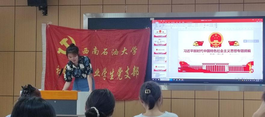 习近平新时代中国特色社会主义思想,是新时代中国共产党的思想旗帜,是国家政治生活和社会生活的根本指针,为实现中华民族伟大复兴提供了行动指南。党的十九大把习近平新时代中国特色社会主义思想确立为党必须长期坚持的指导思想并写入党章,十三届全国人大一次会议把这一重要思想载入宪法,实现了党和国家指导思想的与时俱进。为深入学习习近平新时代中国特色社会主义思想,法学院社会工作专业学生党支部于5月25日在博学楼A402开展党组织生活,集中学习专题摘编的第十章至第十二章。