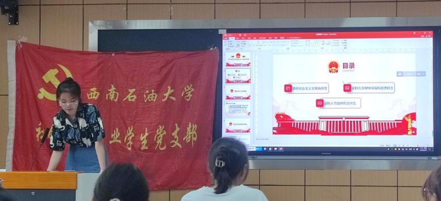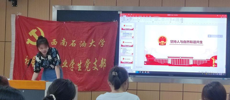 在第三部分,主持人从习近平生态文明思想着手,带领同学们深入学习习近平生态文明思想。习近平生态文明思想深刻回答了为什么建设生态文明、建设什么样的生态文明、怎样建设生态文明的重大理论和实践问题,提出了一系列新理念新思想新战略,是党领导人民推进生态文明建设取得的标志性、创新性、战略性重大理论成果。