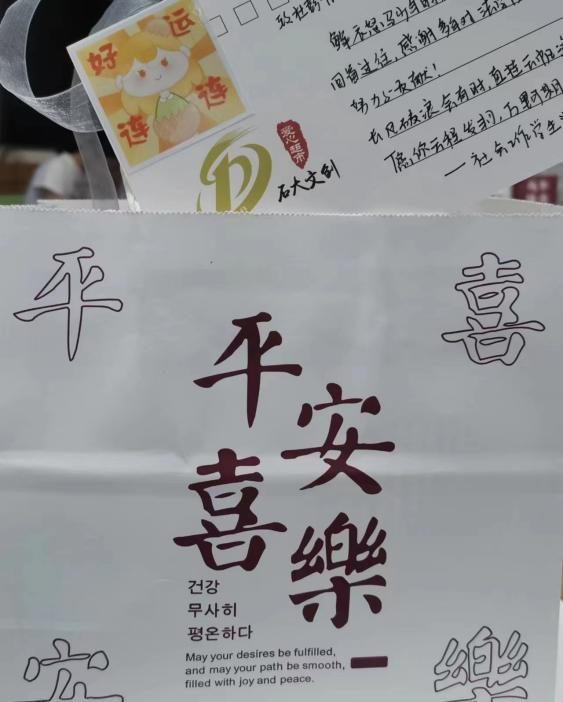 茶话会开始,支委为全体毕业生送上支部准备的小礼品,包括定制有支部Logo以及毕业生党员姓名的专属钥匙扣、杯子和精心手写毕业祝福的学校定制款明信片,贴心的小细节和满满的仪式感让毕业生党员们为之动容,生动诠释了“聚是一团火,散是满天星”的情谊。茶话会中以“逛三园”游戏互动交流,大家畅所欲言,结合大学的切身体会,交流彼此的感悟和经验,也为学弟学妹们分享了学习生活中的建议。毕业生党员们的分享饱含对母校深深的眷恋与不舍,也有对彼此的祝福和对学弟学妹们的期待。