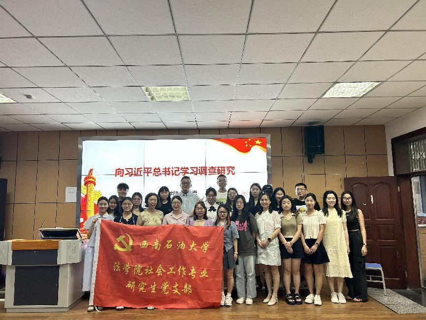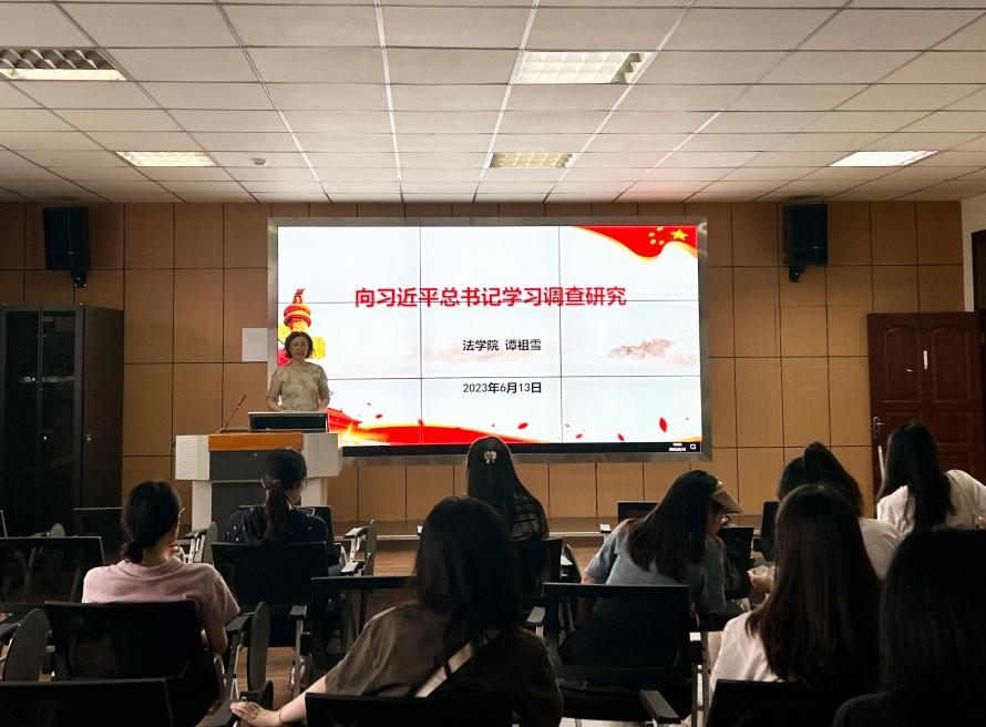 为持续深入贯彻主题教育理论学习,进一步增强党员本领及素质,2023年6月13日晚上7点,法学院社会工作专业硕士研究生党支部开展了“向习近平总书记学习调查研究”主题党课活动,本次党课由法学院谭祖雪院长讲述,支部全体同志参加。