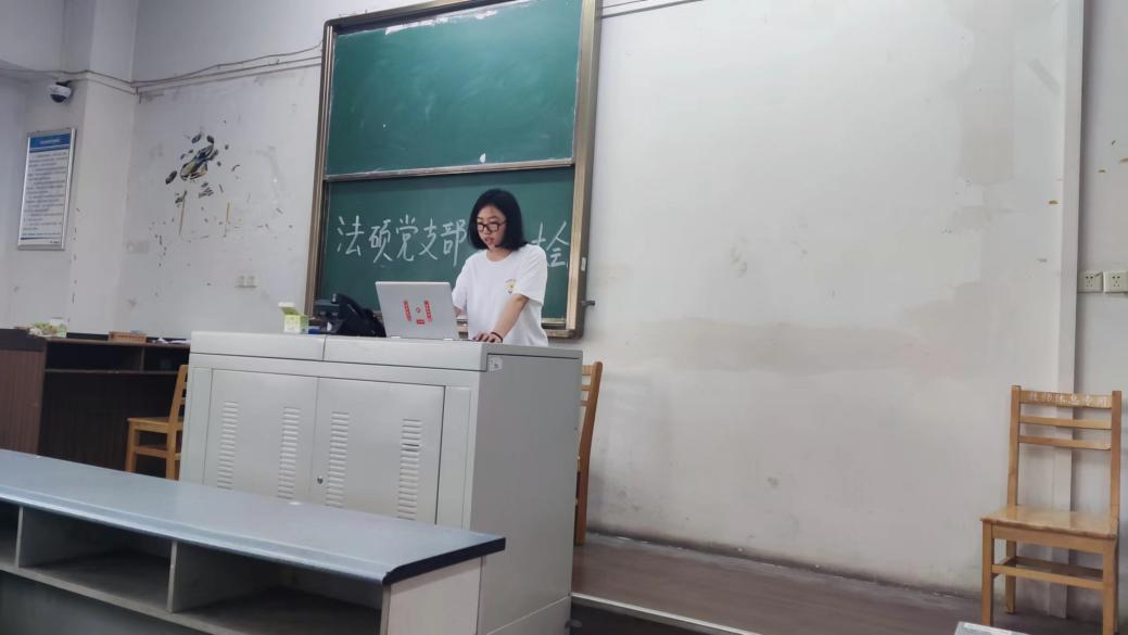 以理论滋养初心,以理论引领使命。学党章、读二十大报告是党员与积极分子的思想必修第一课!为深入学习贯彻党的二十大精神,推进主题教育走深走实,6月9日,法硕党支部在博学楼B102开展了“认真学习章程,严格遵守党章”主题教育活动,体会党章所蕴含的党员精神,本次主题活动由党支部见习支委付晓玲主持。