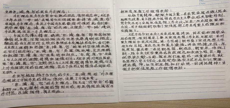 本次生活会主要由社会工作党支部成员分散进行阅读学习,并完成相应学习记录与笔记。多名支部同志在笔记中说到,中国坚持对外开放的基本国策,奉行互利共赢的开放战略,推动高质量共建“一带一路”,推进全球发展倡议,推动构建全球发展共同体。支持多边贸易体制,推动建设开放型世界经济,推动经济全球化朝着更加开放、包容、普惠、平衡、共赢的方向发展。中国秉持共商共建共享的全球治理观,积极参与全球治理体系改革和建设,维护以联合国为核心的国际体系、以国际法为基础的国际秩序、以联合国宪章宗旨和原则为基础的国际关系基本准则,维护和践行真正的多边主义,坚决反对单边主义、保护主义、霸权主义、强权政治。坚持共同、综合、合作、可持续的安全观,推动落实全球安全倡议。建设性参与国际和地区热点问题政治解决,在气候变化、减贫、反恐、网络安全和维护地区安全等领域发挥积极作用。