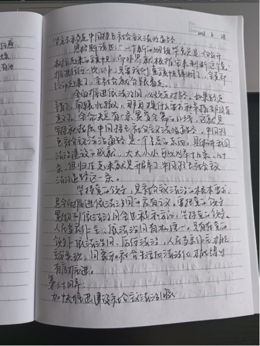 为使学生牢记习近平总书记的嘱托,成为担当民族复兴大任的时代新人,2023年6月28日、29日法学院社会工作专业学生党支部组织各位党员、预备党员、入党积极分子们分散自学《习近平著作选读(第一卷)》第三十四章、第三十七章、第四十一章、第四十二章、第四十三章的相关内容。
