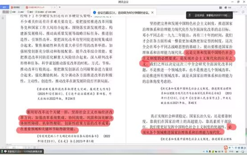 为深入学习贯彻习近平新时代中国特色社会主义思想,不断推动思想主题教育走深走实,引导全体党员“学思想、强党性、重实践、建新功”,2023年7月7日17时,法学专业学生第三党支部在线上会议组织开展了七月主题教育,本次理论学习主题会围绕“准确把握中国式现代化的中国特色、本质要求和重大原则”进行。会议由陈佳雨同志主持,李鹏程同志主讲,支部全体同志参与。