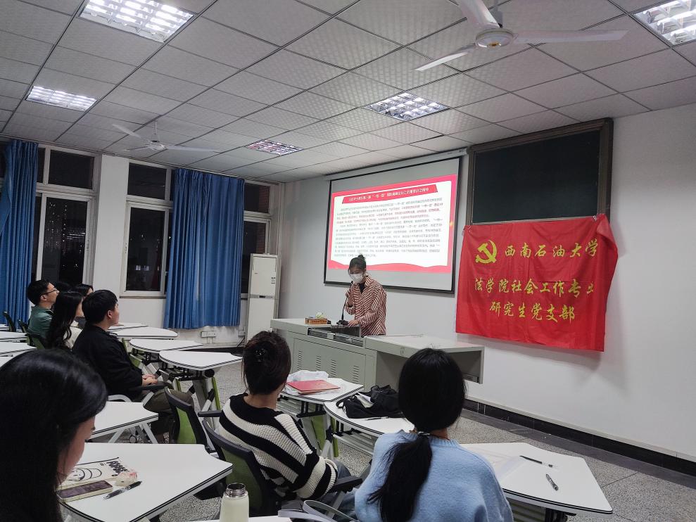 11月9日,法学院社硕党支部在博学楼A506组织学习活动,对习近平主席在第三届“一带一路”国际合作高峰论坛上的重要讲话精神进行深入探讨。我们要学以致用,知行合一,共同打造人类命运共同体,推进“一带一路”高质量发展。