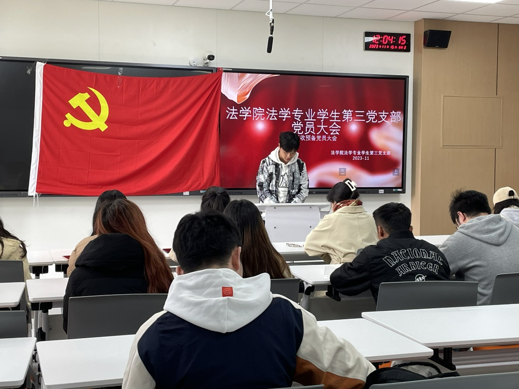 2023年11月15日12:00,西南石油大学法学院法学学生第三党支部在博学楼A304召开了关于吸收发展对象为预备党员的会议。会议应到26人,实到26人,支部书记邵梧枭同志主持。