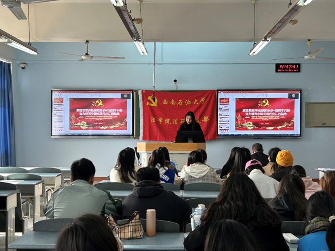 为深入学习贯彻习近平同志在江西考察时所发表的重要讲话精神,完整准确全面贯彻新发展理念。2023年11月23日,法硕党支部在博学楼A504开展主题为“解放思想开拓进取扬长补短固本兴新,奋力谱写中国式现代化江西篇章”的集中学习。本次主题活动由党支部见习支委舒文静主持。