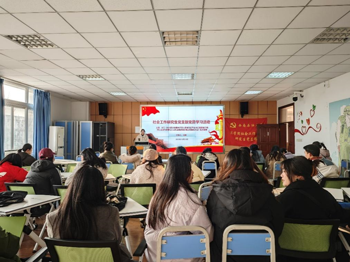 为进一步加强党员的理论知识和自我修养,2023年12月21日下午4:30,法学院社工研究生党支部召开了以“学习《中共四川省委关于深入贯彻习近平总书记重要指示精神以县域为重要切入点扎实推进城乡融合发展的决定》相关精神”为主题的理论学习,本次会议由蓝英同志进行主持讲解。