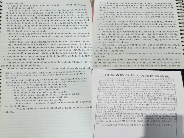 为持续强化学生党员开展政治理论学习,切实以党的创新理论武装头脑、指导实践、推动工作,2024年3月13日,法学专业学生第三党支部以自学形式开展了对习近平总书记重要讲话精神的学习,本次学习聚焦习近平总书记在中共中央政治局第十一次集体学习时的重要讲话精神、习近平总书记在主持召开中央全面深化改革委员会第四次会议上的重要讲话精神、习近平总书记在二十届中央纪委三次全会上的重要讲话精神。
