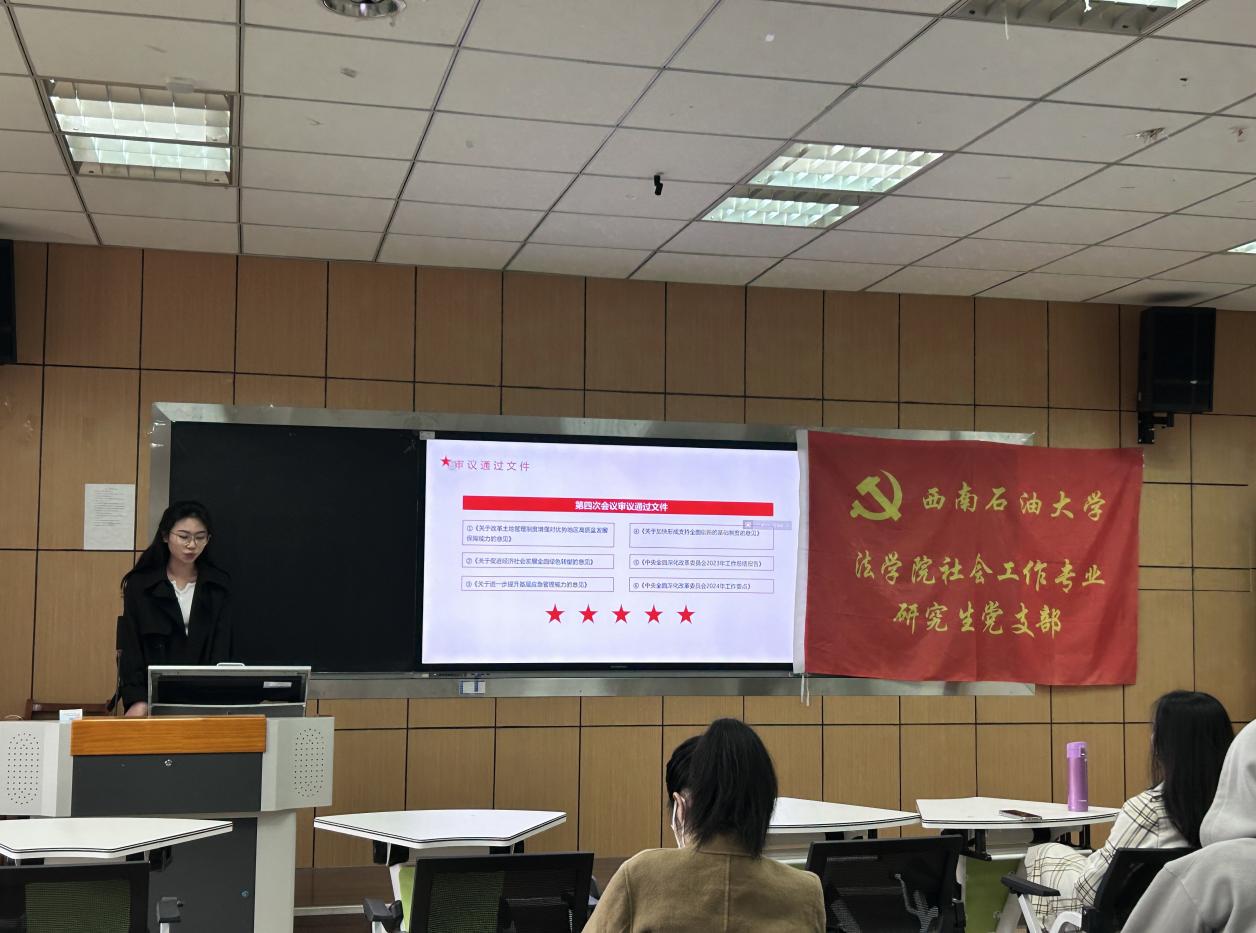 为深入学习习近平总书记在主持召开中央全面深化改革委员会第四次会议上的重要讲话精神,社会工作研究生党支部于2024年3月27日下午在博学楼A406开展了主题教育学习。