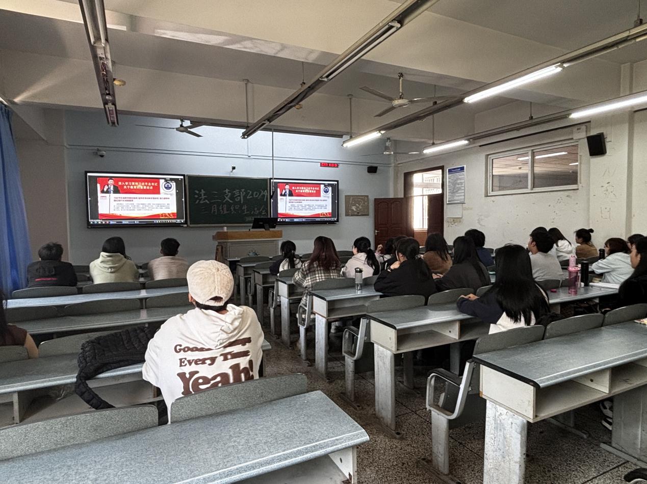 为深入学习2024年全国教育会议精神和关于进一步加强“一站式”学生社区建设党建引领等四个方面重点工作的通知,2024年3月28日13时,法学专业学生第三党支部开展了第二次理论学习。会议由齐崇汝同志主讲,支部全体同志参加。