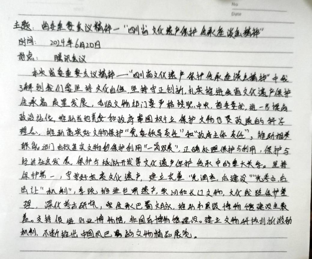 通过此次理论学习,支部成员表示将继续深入学习贯彻省委会议精神, 为保护和传承四川的文化遗产贡献自己的力量。