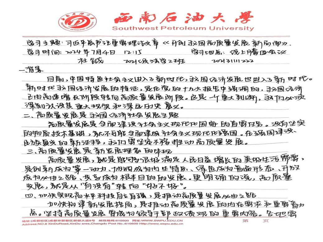 新时代我国经济已由高速增长阶段转向高质量发展阶段,为了深刻认识其重大现实意义和深远历史意义,法学院法学专业学生第一党支部于7月4日中午在腾讯会议召开七月第一次理论学习,党支部全体同志均于线上参与会议。
