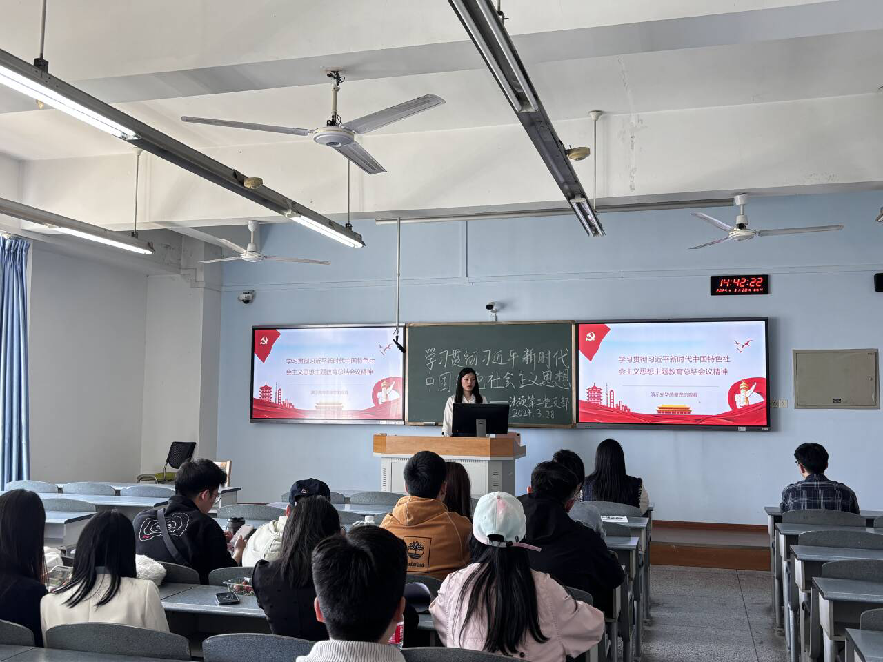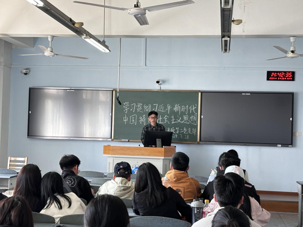 为深入学习习近平新时代中国特色社会主义思想,2024年3月28日,法硕第二党支部在博学楼A502开展主题为“学习贯彻习近平新时代中国特色社会主义思想主题教育总结会议精神”的集中学习。本次主题活动由党支部支委曾嘉骏主持。