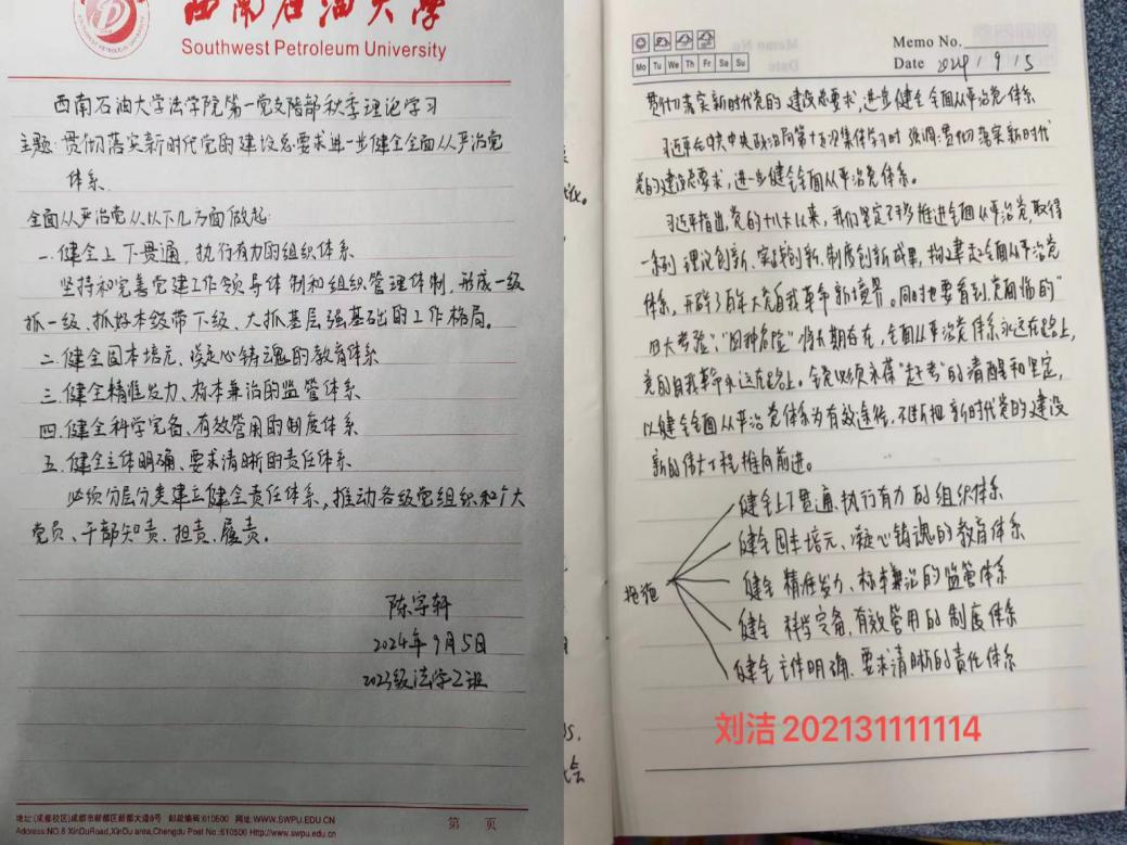 全面从严治党作为党的建设的重要组成部分,对于保持党的先进性和纯洁性具有深远意义。为了深入贯彻党的建设总要求,法学院法学专业学生第一党支部于9月5日中午在博学楼B306召开九月第一次理论学习,党支部全体同志积极参与。