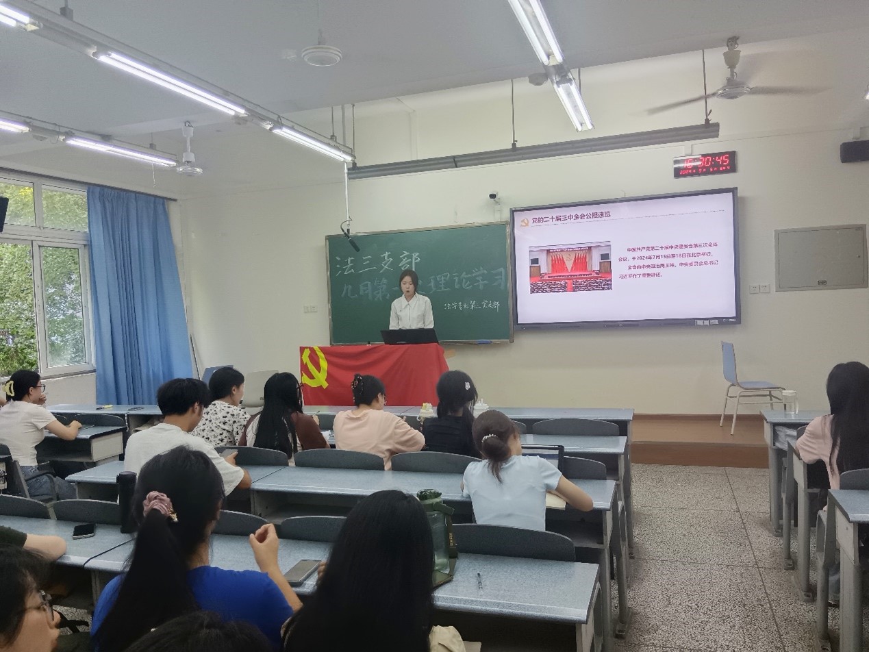 为深入学习贯彻党的二十届三中全会精神,深刻理解全会主题和中共中央关于进一步全面深化改革、推进中国式现代化的决定,2024年9月5日,法学专业学生第三党支部于博学楼B206教室开展了九月第一次理论学习。本次学习聚焦中国共产党第二十届中央委员会第三次全体会议公报。