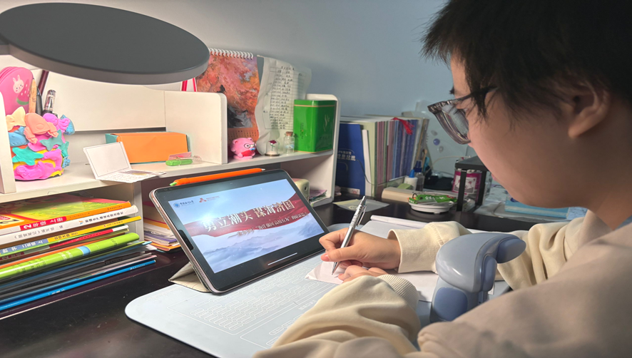 汪偌熹同学在观看宣讲直播