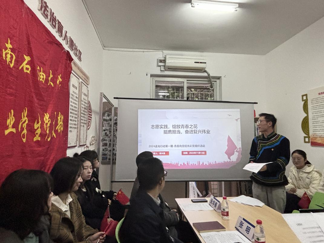为打造“厚德、尚美、崇学、智慧、自主”五位一体的高品质育人阵地,打通“三全育人”最后一公里,让社区成为学生党建前沿阵地,法学院社会工作专业学生党支部于11月13日下午在弘毅居学生一站式社区工作站开展“逐光行动第一期——青春向党绽光彩”主题党日活动。