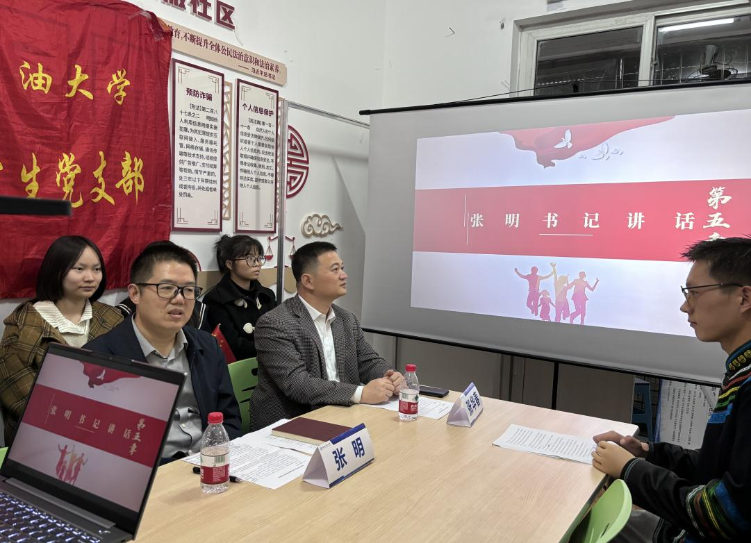 活动尾声,张明书记进行了总结发言。张书记提到,实施“一站式”学生社区综合管理模式建设,是深入贯彻习近平总书记关于教育的重要论述,提升新时代高校党建和思想政治工作系统化、精细化的重要改革举措。当前学校扎实推进“一站式”学生社区建设和“讲、赛、践”活动,旨在满足学生需求、培养学生素质、推动学校发展。今天的党日活动精心设计、各环节环环相扣,很有意义。希望青年学生党员以“初心”定航向,以“勤学”作舟楫,以实干展“风帆”,踔厉奋发,勇毅前行。