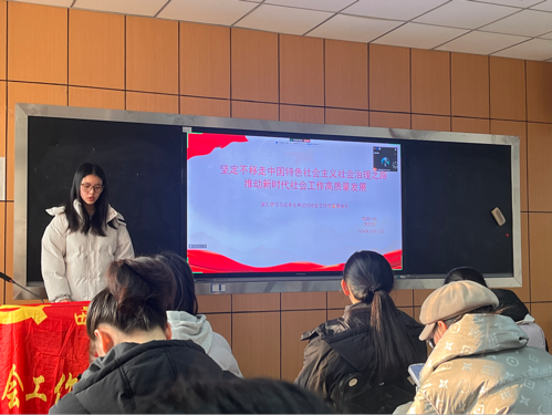 为坚定不移走新中国特色社会主义道路社会治理之路,推动新时代社会工作高质量发展,深入学习习近平总书记对社会工作的的重要指示,法学院社工党支部于12月12日在博学楼A406开展本月第一次的理论学习。