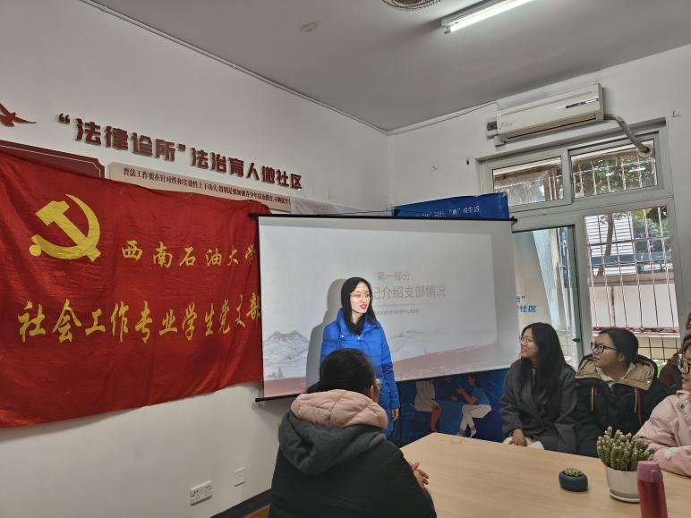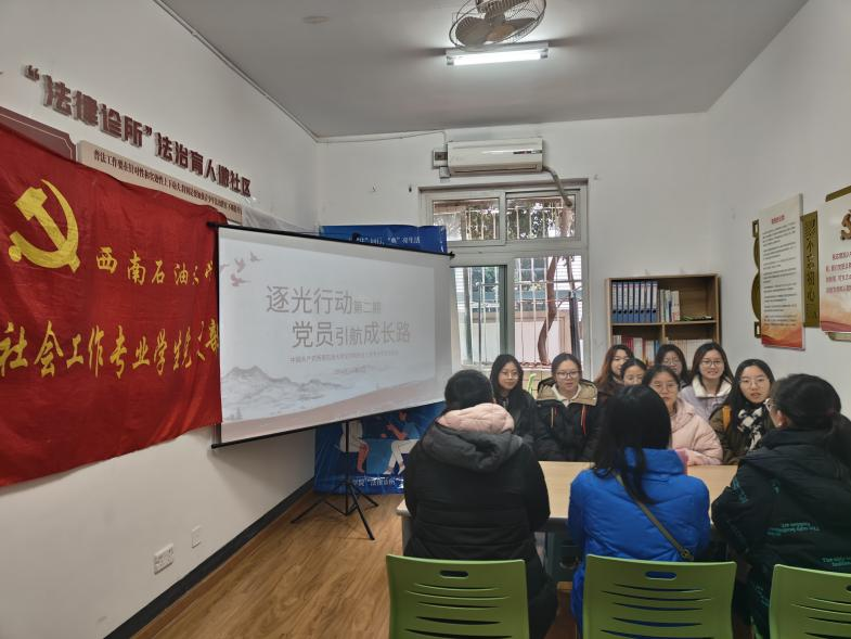 近日,法学院社会工作专业学生党支部成功举办了 “逐光行动第二期 - 党员引航成长路” 党日主题活动,旨在通过党员榜样力量,助力学生成长成才,进一步推动 “三全育人” 工作深入开展。此次活动由党支部书记肖丹主持,11 名社工支部同学共同参与。
