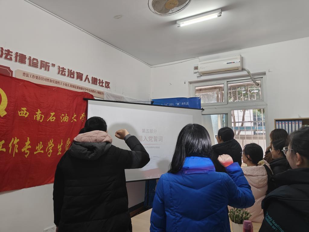 最后支部书记带领同学们一起重温入党誓词,在宣誓的过程中,同学们不禁回顾起保研党员分享的成长经验与奋斗历程,对党员的责任与担当有了更为深刻的感悟,也更加坚定了自身在未来逐光奋进、践行使命的决心。