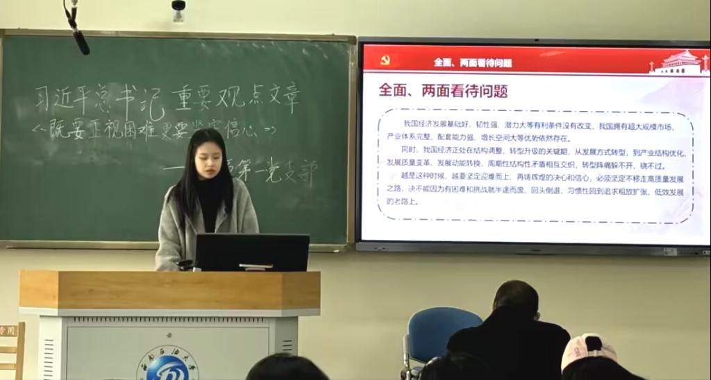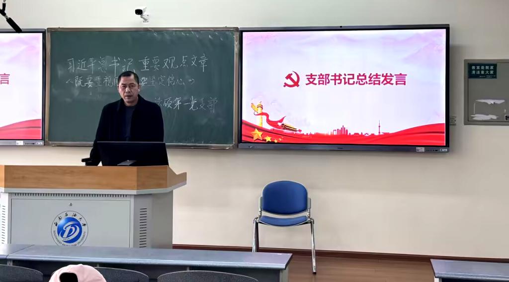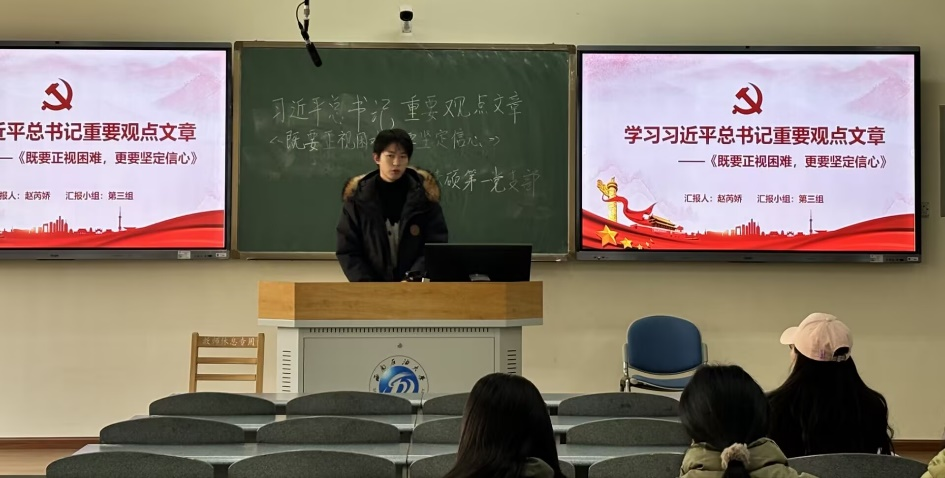 为深入领悟习近平新时代中国特色社会主义思想,学习贯彻习近平总书记重要观点文章,2024年12月26日,法硕第一党支部在博学楼B307开展组织生活会,集中深入学习习近平总书记在中央经济工作会议关于《既要正视困难 更要坚定信心》的重要发言。本次组织生活会由党支部见习支委谢顺航同志主持。