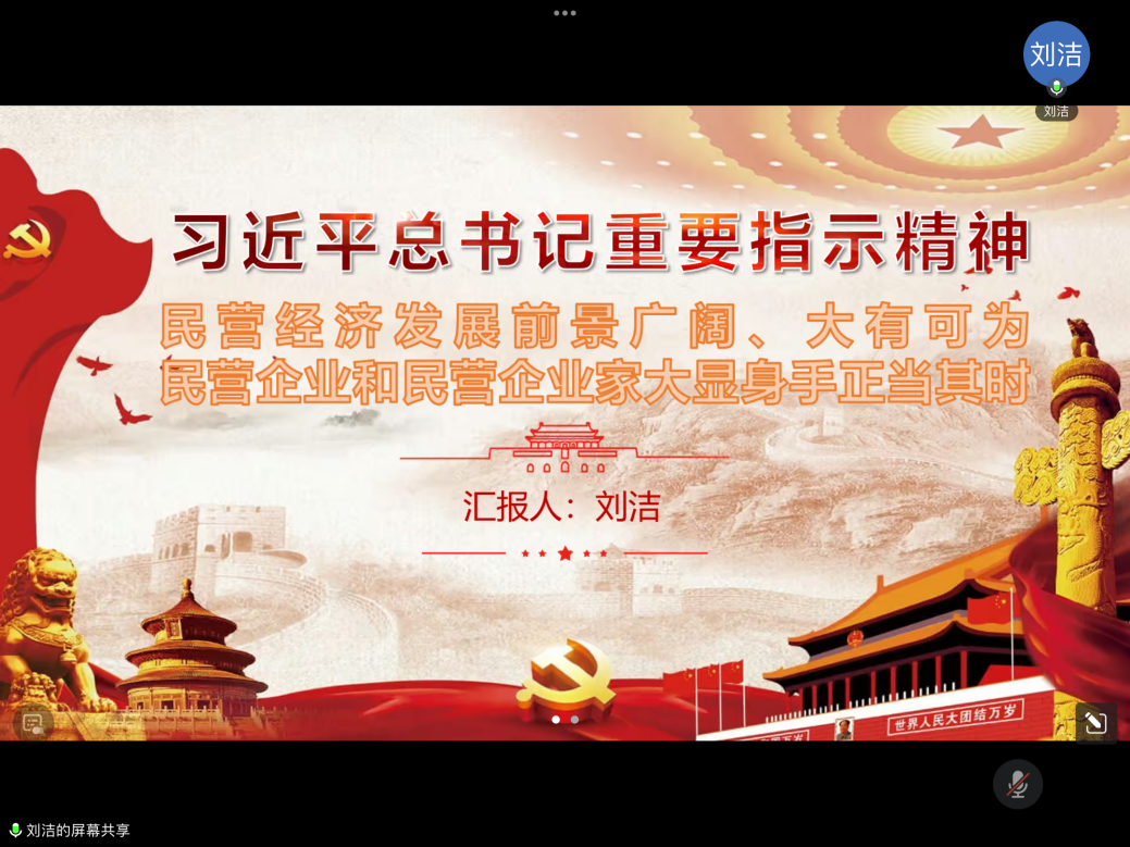 为了深入学习总书记关于民营经济前景光明、民营企业和企业家大显身手的深刻论述,法学院法学专业学生第一党支部于3月6日中午在腾讯会议召开三月第一次理论学习,本次理论学习由见习支委王嘉林主持,党支部全体同志积极参与。