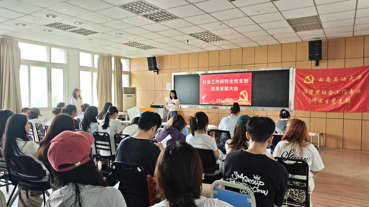 2025年5月15日星期四下午三点,西南石油大学法学院社工研究生党支部在博学楼A406教室召开了党员大会。本次会议由鲜雨洛同志主持,会议有两项议程,内容充实且意义深远。