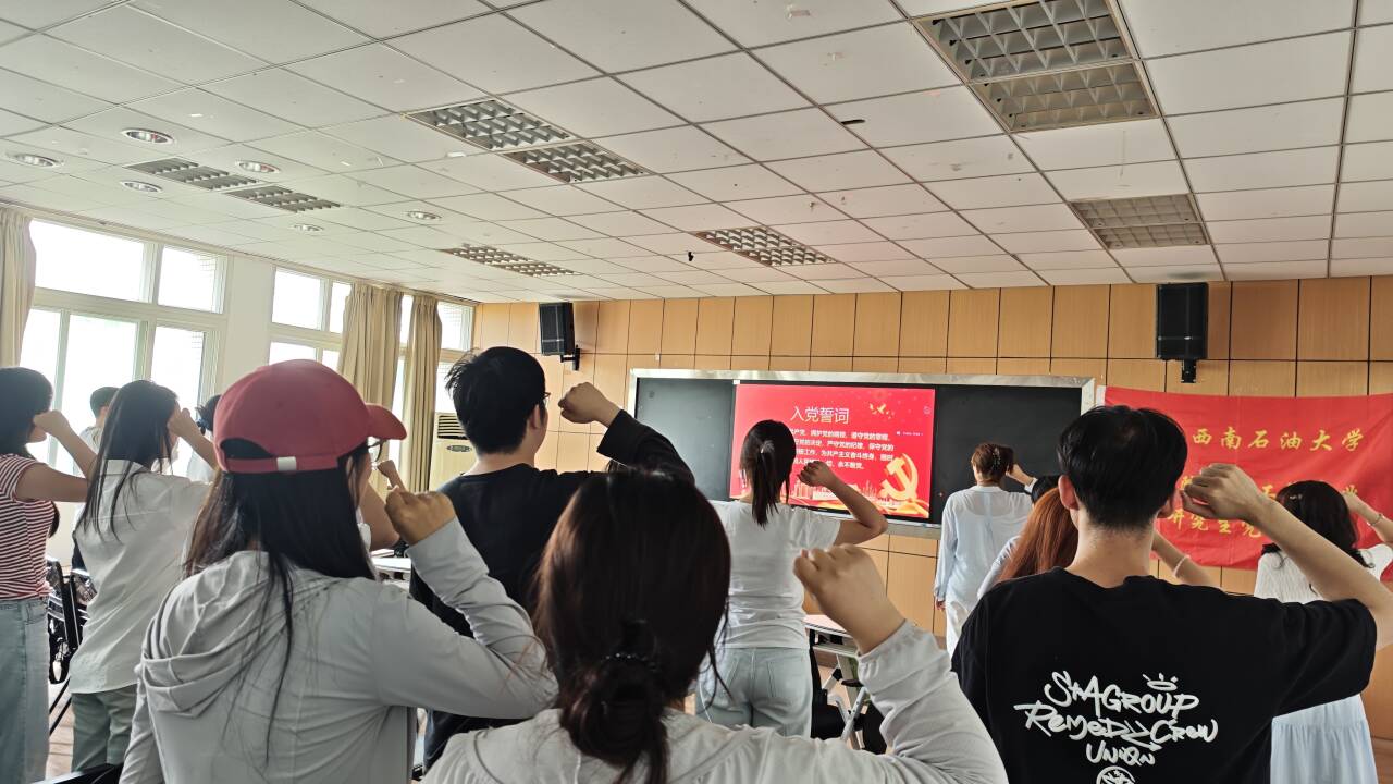 会议第一项,党员发展大会。会上,黄思雨等五位同志就自己的入党动机、学习工作情况以及未来的规划进行了汇报。表示将时刻以党员的标准严格要求自己,为党和人民的事业贡献自己的力量,并表达了自己对党的坚定信仰和为人民服务的决心。经过与会党员的举手表决,同意通过黄思雨等五位同志发展为中共预备党员的申请。随后,李明修同志带领全体党员重温了入党誓词,面对鲜红的党旗,庄严宣誓。