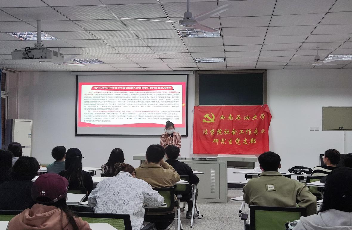 11月16日,法学院社硕党支部开展组织学习活动,对习近平总书记在中共中央政治局第九次集体学习时的重要讲话进行交流和探讨。知行合一,与时俱进,深刻领会党的重要精神,推进新时代党的民族工作高质量发展。