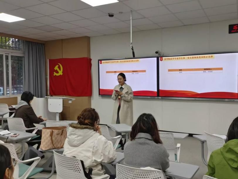 理论学习结束后,法二党支部开展接收预备党员以及预备党员转正的支部大会。大会讨论了白媛等6名同志的入党问题以及张雨同志的转正问题,各发展对象、预备党员进行情况汇报,各发展对象、预备党员对应的培养联系人介绍发展对象、预备党员在培养期间的教育和考察情况,并对其能否入党、转正表明意见。经大会讨论,与会党员充分发表意见,并举手表决后,同意接收白媛等6名同志为预备党员,同意张雨同志转为中共正式党员。