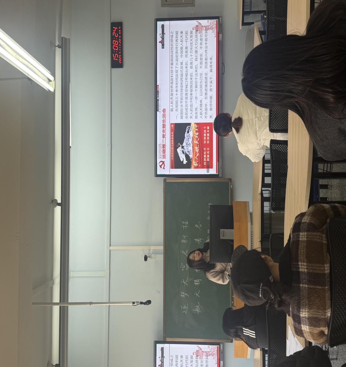 会议伊始,袁嘉雯同志组织全体党员观看了航天领域相关央视新闻报道,使党员同志们直观感受了中国航天的跨越式发展成就。随后,通过热点背景学习环节,详细解读了2025年航天事业的重大突破。例如,神舟二十一号实现快速对接与换船返航、长征系列火箭推进航班化运营、海南商业航天发射场形成产业闭环等,促使党员同志们深刻认识到航天事业作为新质生产力重要抓手的战略意义。