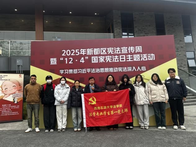 在“12·4”国家宪法日来临之际,为推动宪法学习从理论走向现场、从单一支部延伸至校际协作,西南石油大学法学院法学专业学生第一党支部联动新都区司法局等单位,紧扣“学习贯彻习近平法治思想,推动宪法深入人心”主题,以“实地观摩+支部联建”的形式开展实践活动。
