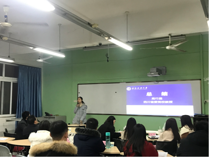 2019年11月28日晚上19:00,由西南石油大学法学院主办、法治与社会治理研究院承办的法治与社会治理论坛(第四期)圆满举行。本次论坛特别邀请了中共四川省委党校禹竹蕊教授、西南石油大学石油与天然气工程学院学工办副主任张继老师以及西南石油大学法学院院长助理、法治与社会治理研究院副院长王浩老师作为特邀嘉宾出席。参与论坛的还有来自中共四川省委党校、西南石油大学法学院、经济管理院、外国语学院的同学们,论坛由西南石油大学2019级法学硕士专业向贝贝同学主持。