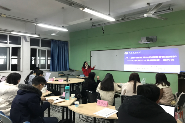 本次研讨会以一名同学报告加一名同学点评的方式展开。西南石油大学2019级法学硕士专业杨鹏霄同学首先带来报告——“人脸识别引发的个人信息侵权问题及其法律应对——以‘中国人脸识别第一案’为出发点”,分析、梳理了侵权法层面“人脸识别”带来的挑战与学界观点;报告后,四川省委党校2019级法律硕士李佳玲同学对杨鹏霄的报告进行了点评,肯定了其报告内容的丰富性,同时也给出了完善报告内容的建议。随后,我校2019级法学硕士潘学杰、中共省委党校官伟、李亚敏三位同学分别从消费者权益保护、高校周围居民的相邻权与刑事规制三个方面做了主题报告,四川省委党校王旗、我校白一南、郭莹三位同学依次对报告内容进行了点评。