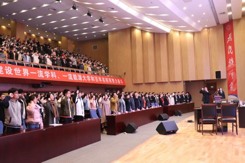 图一、田维博士带领全体师生宣誓