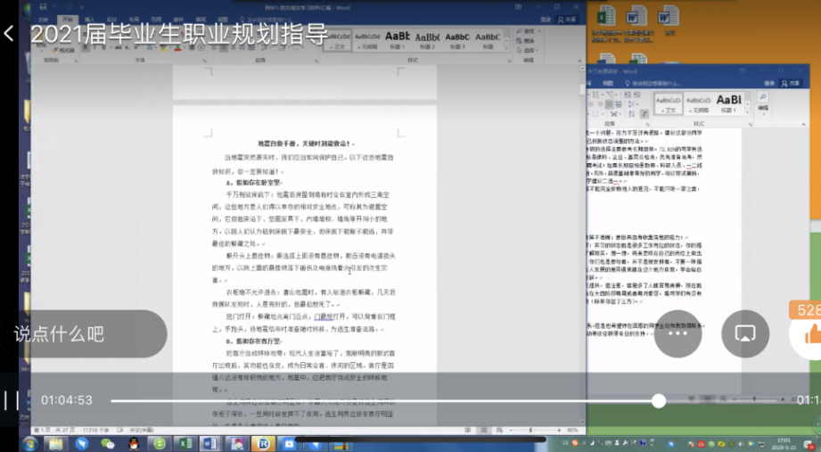 2020年迎来“史上最难就业季”,这对2021届毕业生也带来了不小的压力与困惑。为做好2021届毕业生就业工作前期准备,全面普及学生职业生涯规划知识,帮助学生科学规划自己的职业生涯和学业生涯,2017级辅导员邓超越老师通过前期线上问卷了解了同学们的生涯现状,并于级于5月21日下午4:00在钉钉平台开展2021届毕业生就业形势解读暨职业规划指导讲座。本次讲座由2017级辅导员邓超越老师主持,2017级全体学生积极参与,大会取得圆满成功。