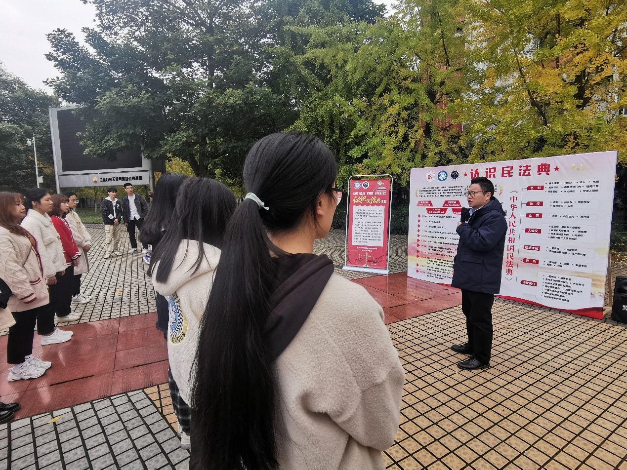 第一篇章——认识民法典,为了引领大学生全面了解民法典的定位、内容、特征、实施和运用,西南石油大学法学院宋旭平老师详细地为同学们讲解了最新颁布的民法典,帮助大家认识民法典,走进民法典。这堂生动的法治教育课,不仅充实和提升了同学们的专业知识,更有助于青年一代将学习到的民法典知识外化于行,做维护社会主义法律权威、弘扬社会主义法治精神的主力军。