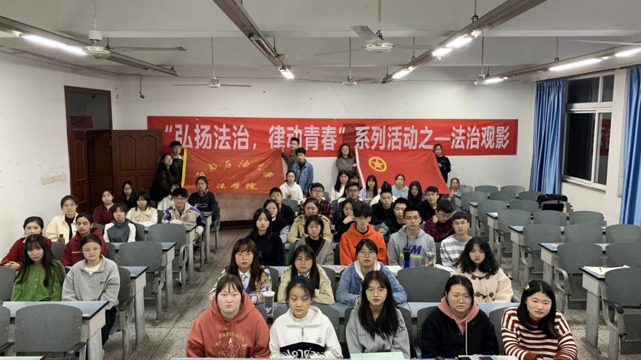 第二篇章——法治观影,同学们全情投入、认真观看,深刻感悟电影《辩护人》所传达出的关于法律与公权力的思考。电影发人深省,同学们内心久久不能平静。观影完毕后,在场同学们发表了观影感受,张桢同学感叹:“我看到了正义始终存在于人们的心中,世界的法治进程正蓬勃向前。”