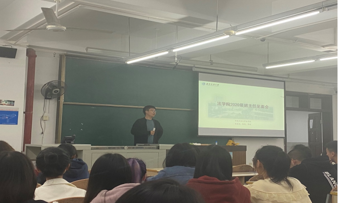 以往事历经引人入胜,得见专业学习之洞天。在20级法学专业班主任见面会中,各位班主任老师从不同方面,不同角度,结合自身专业学习生涯,给同学们提出了专业学习以及生活上的宝贵意见。见面会上,宛佳欣、李欢、陈恋班主任老师向同学们展示了如何合理规划自己的四年大学生活。老师说道,学生在大一大二时需认真学习基础课程,为专业学习打下良好基础。王浩、赵轩、李文怡三位老师就“学习与职业”,“现在与未来”的话题与同学们进行了深入的专题分享,由己及人,现身说法。在对学习、生活、升学、就业等相关方面进行了大致的了解之后,相信法学专业的同学们会更加合理且充实地规划大学四年的学习生活,不负时光。