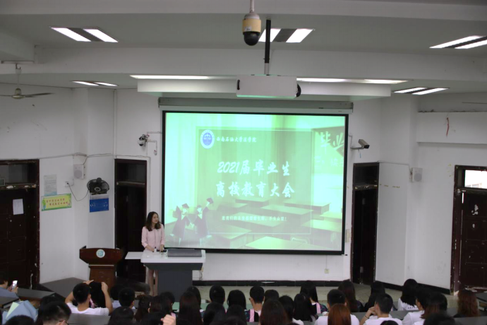 会上,党委副书记于百江老师表示:“时间见证了我们的成长,成就别人就是成长自己。”在本次教育大会上,主要给2021届毕业生作提醒和忠告,提醒同学们档案的重要性以及认真落实档案的相关事宜。同时就安全提出忠告,告诫毕业生们在聚餐高峰期以及今后都要重视食品安全。于书记也在讲话最后为毕业生送上祝福和期望,祝愿大家健康平安,在今后的学习、工作生涯中一展所长,实现自己的抱负。随后,2017级法学专业毕业生代表陈文月同学,主要围绕“做人做事”、“能力提升”、“未来规划”三个方面进行思考,表达自己在大学四年的感触和感恩,引发了同学们巨大的共鸣。