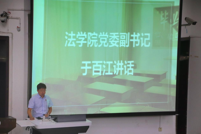 为进一步加强毕业生教育工作,倡导毕业生文明离校的风尚,打造“情系母校、感恩母校、文明离校”的毕业生离校文化,法学院于6月8日上午在思学楼C210开展了2021届毕业生离校教育大会。我院党委副书记于百江出席本次会议,全体2021届毕业生参与本次会议。会议由2017级辅导员邓超越老师主持。