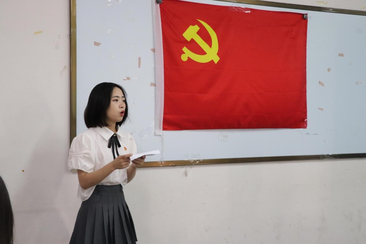 会议随后由毕业生党员同志回顾自己的入党初心,她从自己的学习成长经历、基层党组织对其的培养、对党的认识和今后的努力方向等方面讲述了自己的心声,并表达了对院校各级党组织、对母校、对老师们教育和培养的感谢。